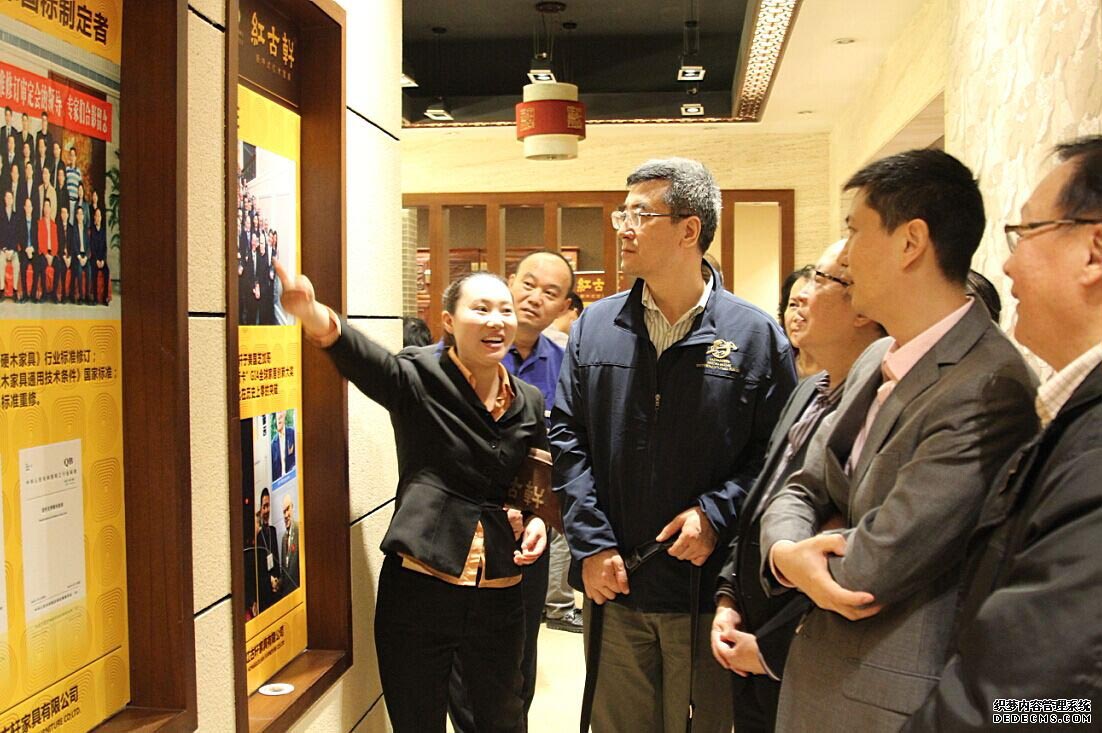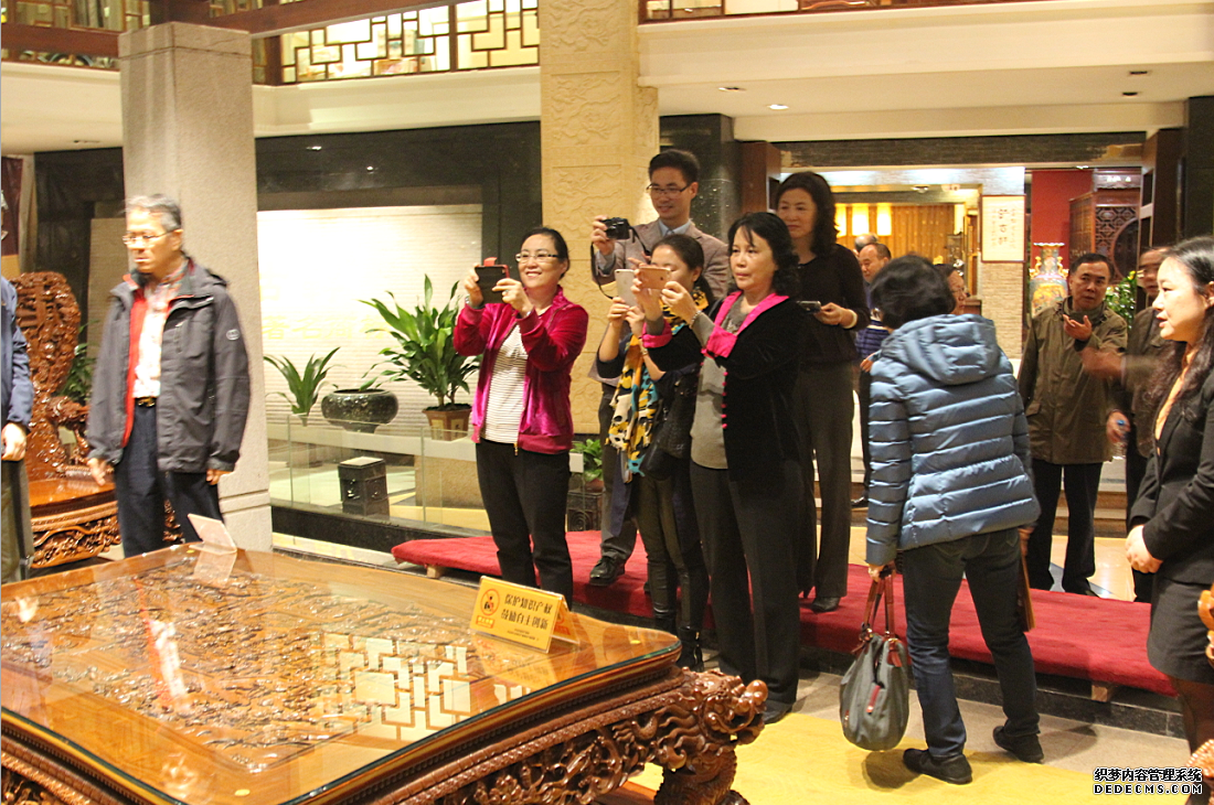 在紅古軒紅木文化館,吳歷山一行通過(guò)與紅木家具的零距離,進(jìn)一步了解了中國(guó)0紅木家具的博大精深。