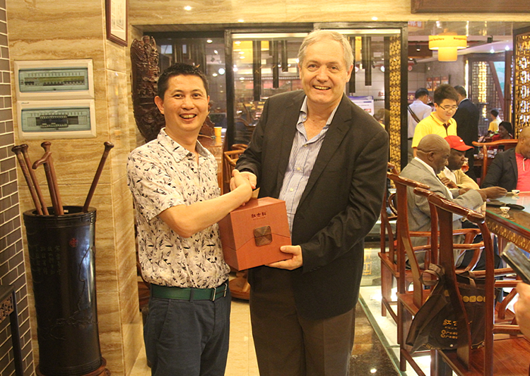 國禮由廣東省紅木商會會長、紅古軒總經(jīng)理吳赤宇先生代表贈予達(dá)瑞爾·斯瓦尼普主席