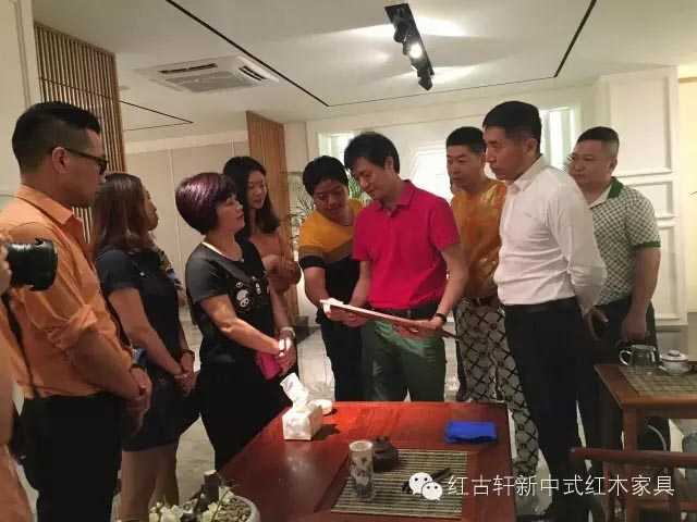 2016年4月28日,偉人故里——中山,喜迎中山家具商會(huì)第七屆理事會(huì)就職典禮。出席本次就職典禮的中國家具經(jīng)銷商聯(lián)合會(huì)成員,特別對中山的家具企業(yè)進(jìn)行了走訪考察。此行,近20位家具經(jīng)銷商大佬第一站,首先來到了中國紅木家具前三甲,中國新中式紅木家具第一品牌,廣東紅木家具老大——紅古軒,零距離感受紅古軒最新力作——悅棠雅風(fēng)的萬般精彩。