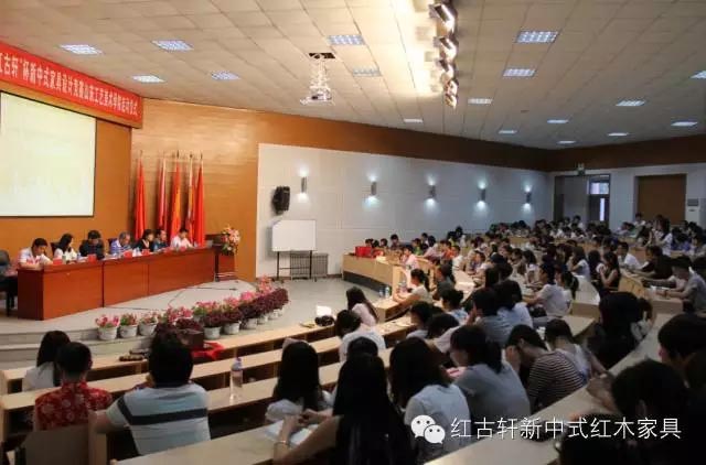 紅木家具技術專家曹新民先生、《家具與室內裝飾》執(zhí)行主編王周先生、紅古軒總經理助理兼營銷總監(jiān)楊晶女士等齊聚一堂,與眾多師生學子,共聚山東工藝美術學院,揮斥方遒,共挖新中式魅力,共享新中式盛宴。
