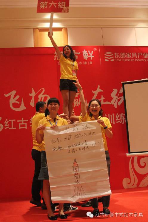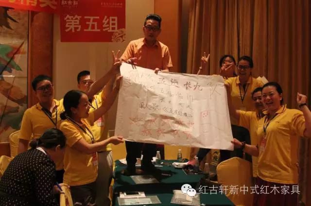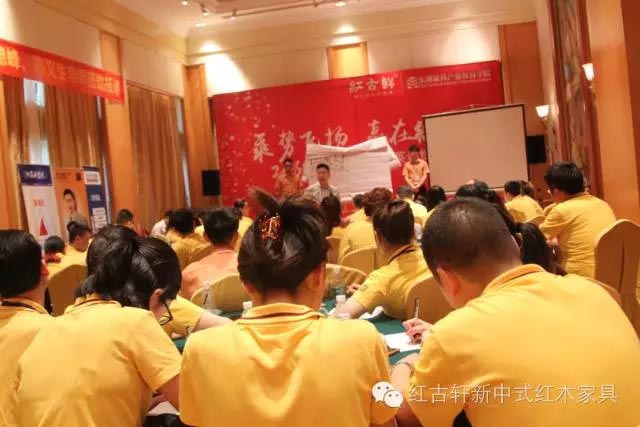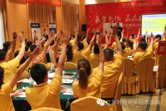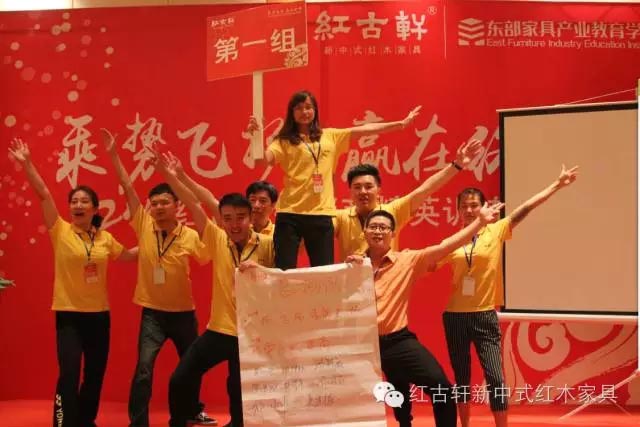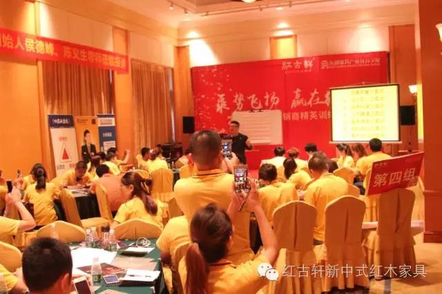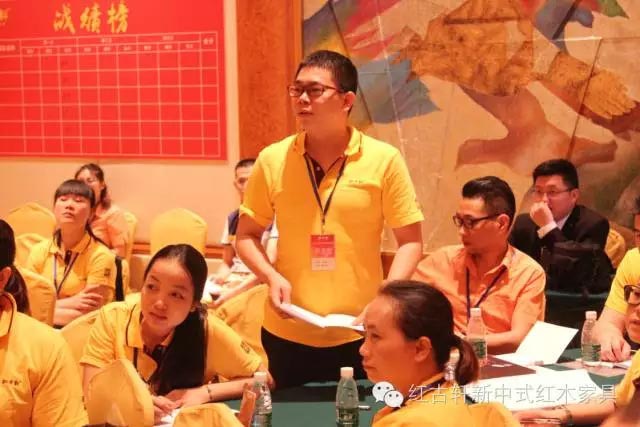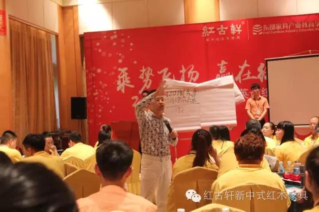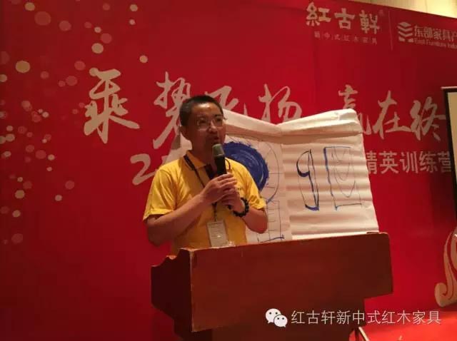 隨后,紅古軒南通店范總以“我進入紅木家具行業(yè)以來,沒有遇到比紅古軒更好的品牌……”的精彩分享,拉開了落地、實戰(zhàn)、激動人心的優(yōu)秀經(jīng)銷商分享會。南通店、煙臺店、揚州店、鹽城店精英分別分享,更將整個訓(xùn)練營氛圍推至高潮。
