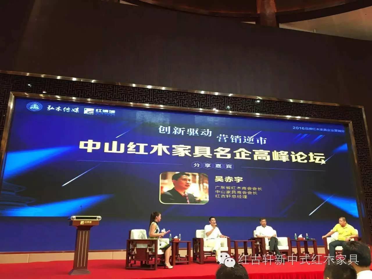 2016年6月15日下午,2016品牌紅木家具企業(yè)營銷分享會(huì),暨中山紅木家具名企高峰論壇,在中山市紅木文化博覽城隆重舉行。大會(huì)由弘木傳媒攜手全聯(lián)藝術(shù)紅木家具專委會(huì)舉辦,得到了中山市大涌鎮(zhèn)人民政府的大力支持。
