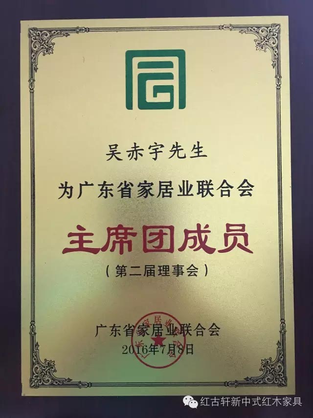 廣東省家居業(yè)聯(lián)合會(huì)第二屆會(huì)員(代表)大會(huì)、第二屆理事會(huì)主席團(tuán)就職典禮暨粵居優(yōu)品品質(zhì)戰(zhàn)略啟動(dòng)儀式于2016年7月8日16:00-21:00,在廣州香格里拉酒店隆重舉行 。此次大會(huì),中國(guó)紅木家具十大品牌、中國(guó)新中式紅木家具第一品牌,紅古軒再次當(dāng)選為廣東省家居業(yè)聯(lián)合會(huì)主席團(tuán)成員,登臺(tái)參與主席團(tuán)就職典禮。此次大會(huì)邀請(qǐng)了廣東省委、省政府領(lǐng)導(dǎo)蒞臨指導(dǎo),同時(shí)也吸引了中國(guó)家居業(yè)最具實(shí)力的工廠(chǎng)、家居賣(mài)場(chǎng),中國(guó)最優(yōu)秀的家居經(jīng)銷(xiāo)商、供應(yīng)商、知名設(shè)計(jì)機(jī)構(gòu)以及權(quán)威媒體和專(zhuān)家學(xué)者前來(lái)共襄盛舉。