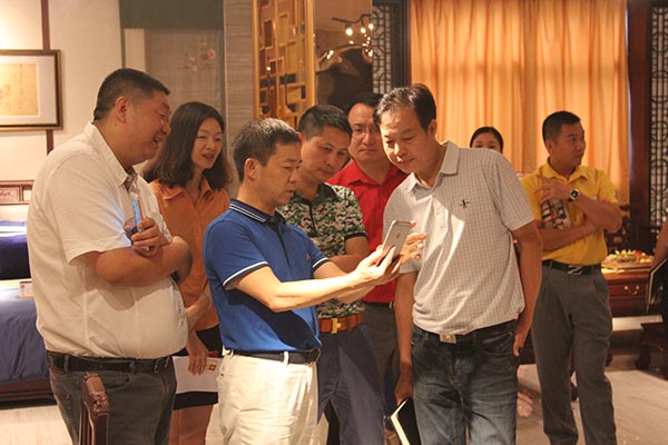 考察期間,首先激情拉開的是一場頭腦風(fēng)暴,風(fēng)暴圍繞“辦公家具與紅木家具如何合作共贏”、“新中式如何布局市場”等話題拉開大幕。現(xiàn)場,高端會晤,交流與探討,靈感與火花四射,誰能說這不是膽識與智慧的完美碰撞?