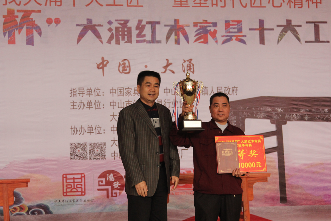 在這場面向大涌整個(gè)紅木產(chǎn)業(yè)基地的大賽中,中國紅木家具十大品牌、新中式紅木家具掌門人,紅古軒溫珍干師傅勇奪冠軍,成為大涌第一工匠,紅古軒又一次奪冠,又一次霸屏啦!厲害了,紅古軒!現(xiàn)場,中山市大涌鎮(zhèn)鎮(zhèn)長賀修虎為溫師傅頒獎。