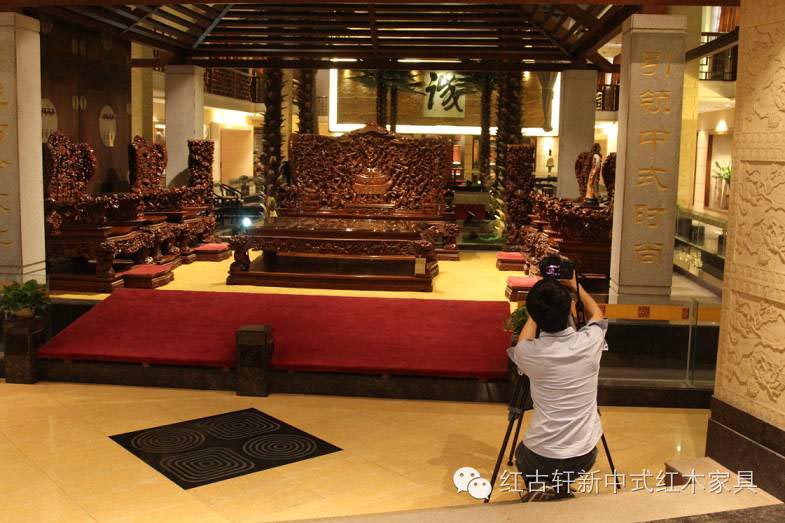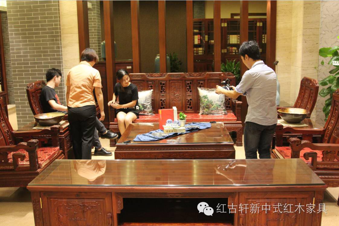期間,攝影組分別在紅古軒紅木文化館、紅古軒“大涌鎮(zhèn)木材干燥”、紅古軒生產(chǎn)中心三地來(lái)回巡影。抵達(dá)之處,無(wú)不盛贊紅古軒品牌的規(guī)范化與精品化。其中,紅古軒的大紅酸枝、巴里黃檀、小葉紅檀喜氣十足的紅木家具,贏得了攝影師的高度盛贊,說(shuō),“90后小兩口太有眼光了!”