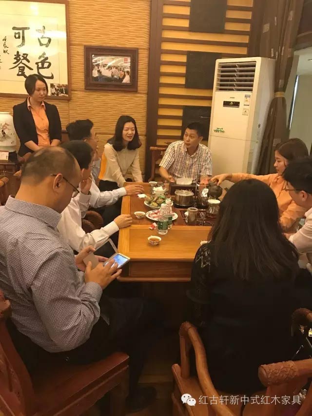 參觀結(jié)束后,大家還歡聚茶室,以最傳統(tǒng)的下午茶方式,悠閑地洽談,歡聲笑語間,共謀紅木家具發(fā)展大勢。