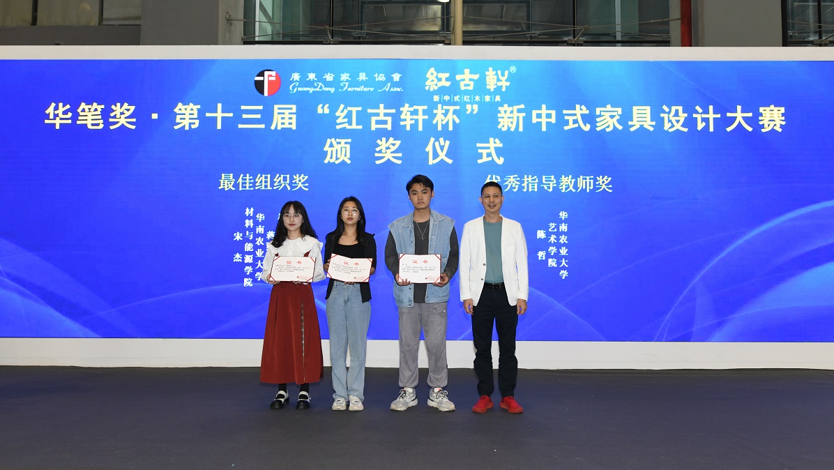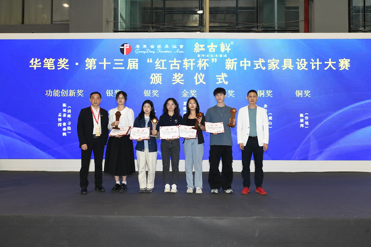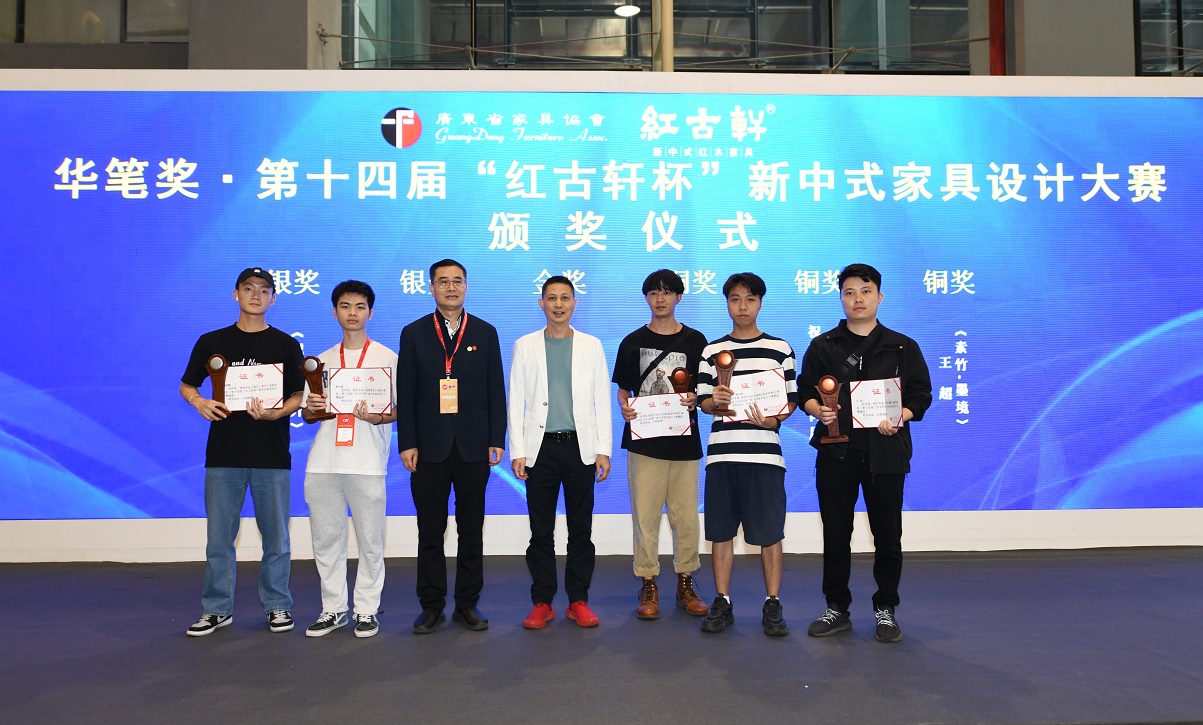 頒獎(jiǎng)典禮上,2021年第十三屆紅古軒杯新中式家具設(shè)計(jì)大賽,祝靜潔、梁同周、夏侯瑩、李治儒作品《宋韻·書(shū)香》奪金獎(jiǎng),獎(jiǎng)金30000元;林如旺作品《錦上》,邱曉玲作品《雅序》,將銀獎(jiǎng)收入囊中,獎(jiǎng)金各10000元;王其文作品《疏影慢》,余香怡、王嘉欣、馬雅作品《觀山》,陳展邦作品《簾境》,贏得銅獎(jiǎng),獎(jiǎng)金各5000元;陳延泰、豪乘鶴、孟懌瀅作品《清暉.尋隱》摘得功能創(chuàng)新獎(jiǎng),獎(jiǎng)金10000元;華南農(nóng)業(yè)大學(xué)藝術(shù)學(xué)院陳哲老師摘得最佳優(yōu)秀指導(dǎo)老師獎(jiǎng);福建農(nóng)林大學(xué)、華南農(nóng)業(yè)大學(xué)材料與能源學(xué)院摘得最佳組織獎(jiǎng)殊榮。