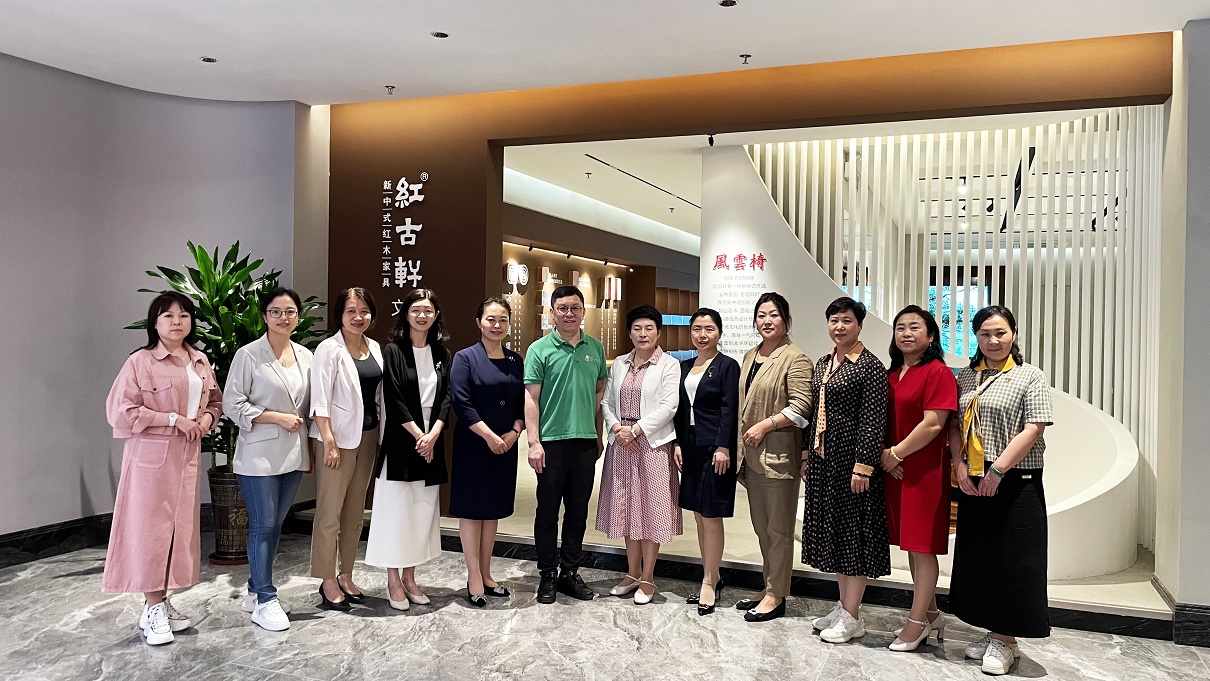 2023年4月23日,民建佳木斯市委副主委、佳木斯市東風(fēng)區(qū)政協(xié)三級調(diào)研員張艷亞;佳木斯市怡源供熱有限公司總經(jīng)理、民建黑龍江省婦女委員會主任、佳木斯市女企業(yè)家協(xié)會會長趙明偉一行,在民建中山市委委員、民建中山市委機(jī)關(guān)二級調(diào)研員陳月榮等領(lǐng)導(dǎo)的陪同下,蒞臨紅古軒參觀考察,共商交流合作,在紅木文化中探尋中華文化雋永的魅力。紅古軒副總裁李春江、營銷總監(jiān)楊晶熱情接待來賓一行。