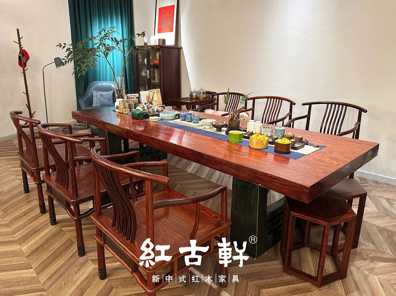 茶室空間是紅古軒的尚品茶臺(tái)