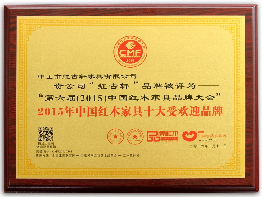中國紅木家具十大品牌 廣東省名牌產(chǎn)品 廣東省著名商標(biāo) 中國家具協(xié)會副理事長單位 廣東省家具協(xié)會執(zhí)行會長單位 全球家居Gia創(chuàng)新大獎獲獎單位 2010第十六屆亞洲運動會公益企業(yè)和杰出貢獻企業(yè)